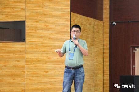 ▲公司技術部產品研發室周晶,代表團隊做《基于TRIZ理論的高原內電雙源動車組輔助風機電機的創新設計》的現場講解